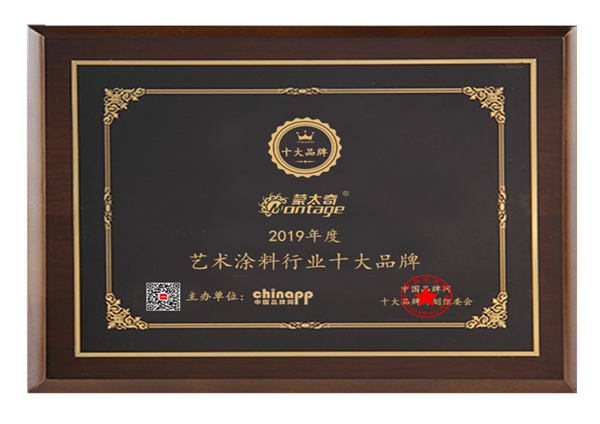 序:蒙太奇品牌于2019年參加中國(guó)品牌網(wǎng)舉辦的2019藝術(shù)涂料行業(yè)十大品牌評(píng)選,在藝術(shù)涂料眾多參選品牌中脫穎而出,榮獲藝術(shù)涂料行業(yè)十大品牌獎(jiǎng)項(xiàng)。